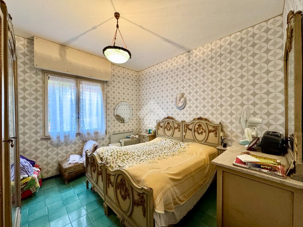 La zona notte comprende una camera matrimoniale di generose dimensioni, mentre il bagno, finestrato, è ben posizionato rispetto agli altri locali.